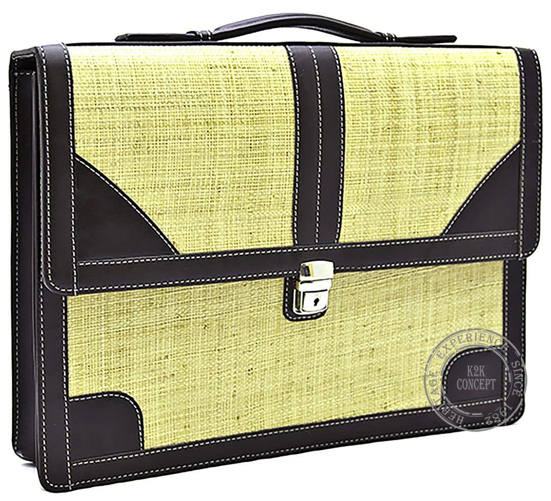 Cartable à main en paille naturelle avec deux soufflets