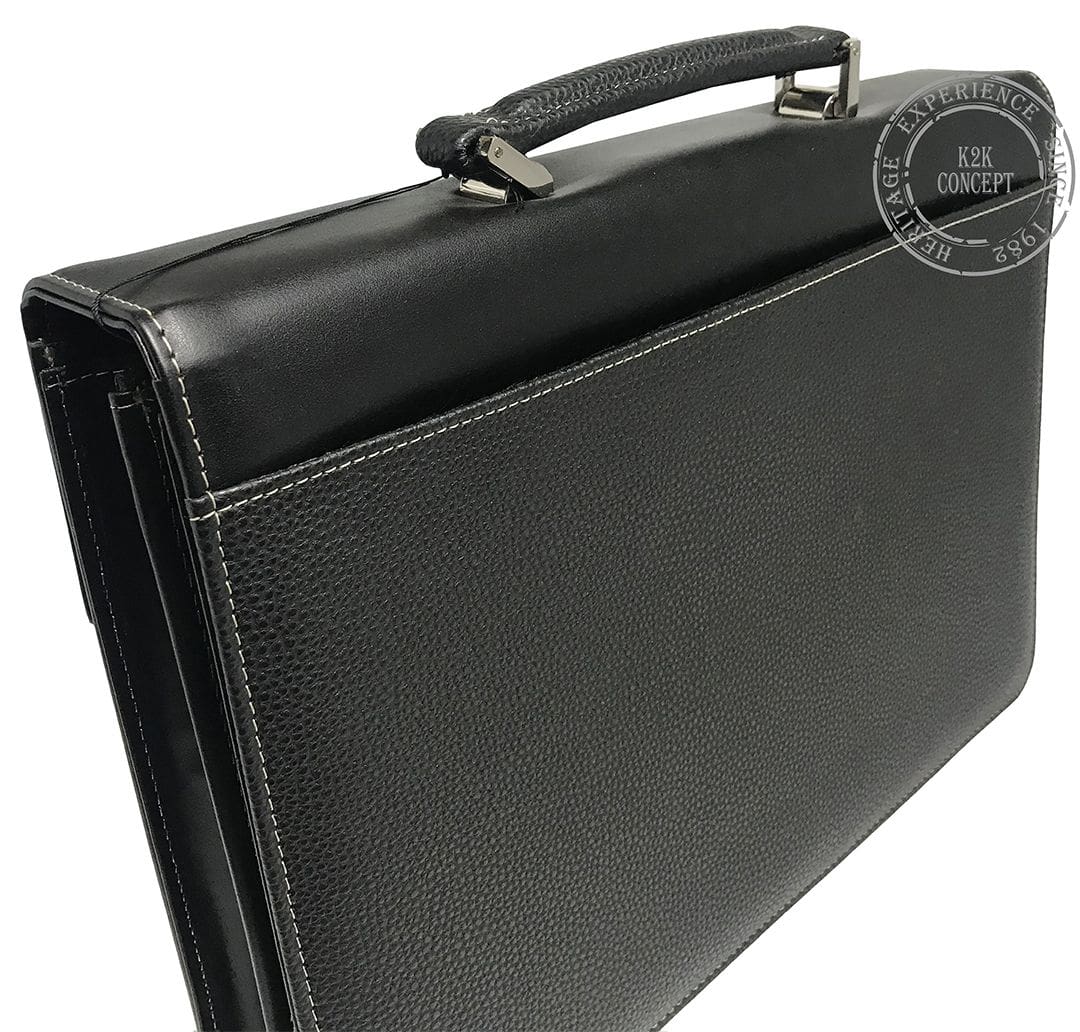 Cartable à main en simili-cuir lisse et grainé avec deux soufflets