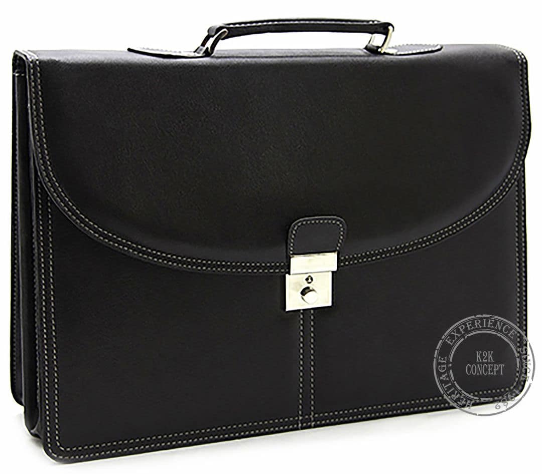 Cartable à main en simili-cuir lisse avec deux soufflets