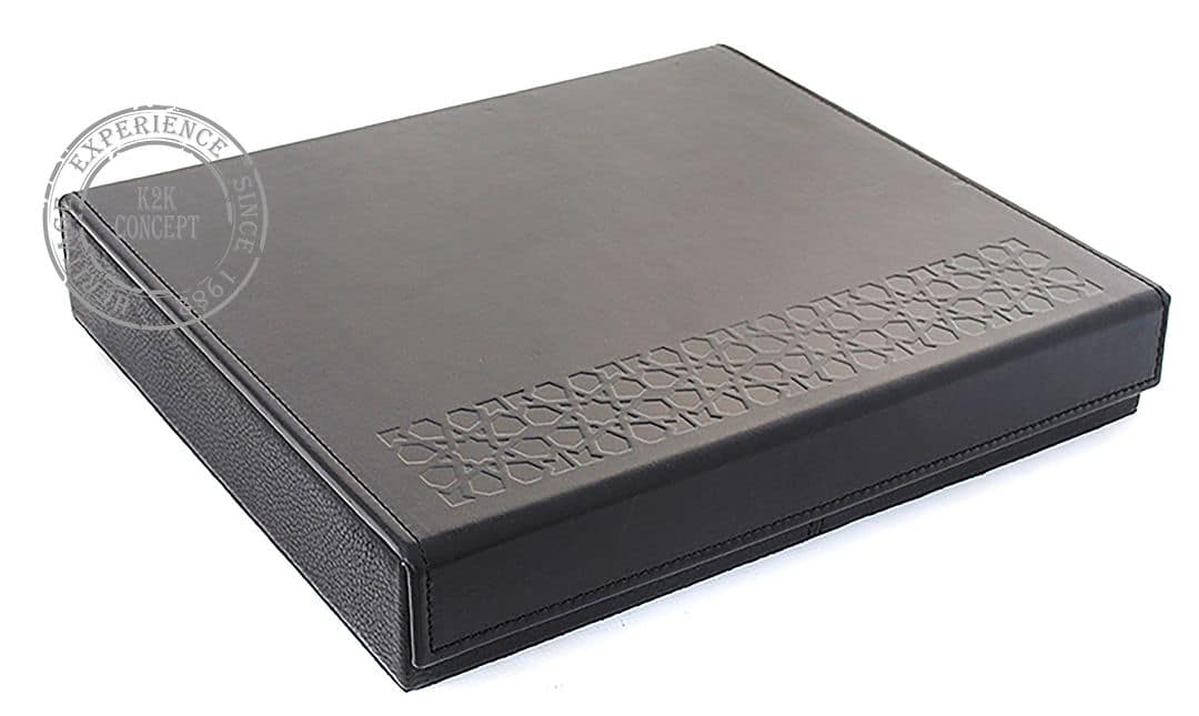 Coffret arabesk en cuir véritable grainé et lisse avec garniture en faux daim interne