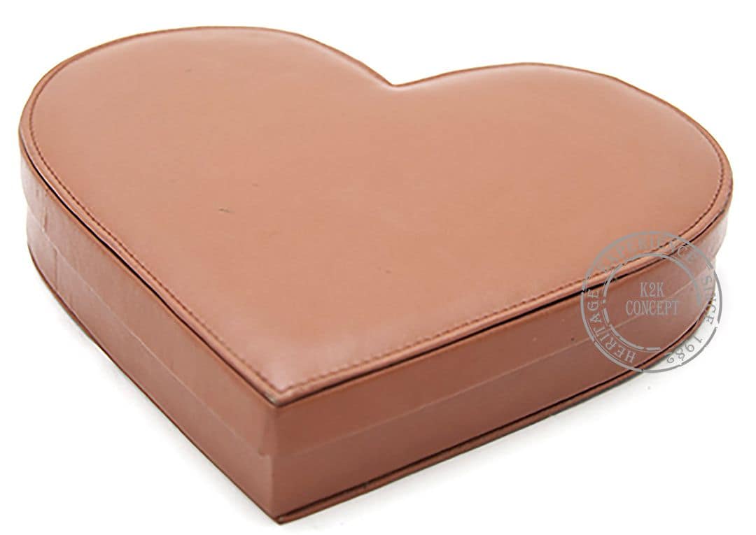 Coffret en forme de coeur en simili-cuir avec garniture en faux daim