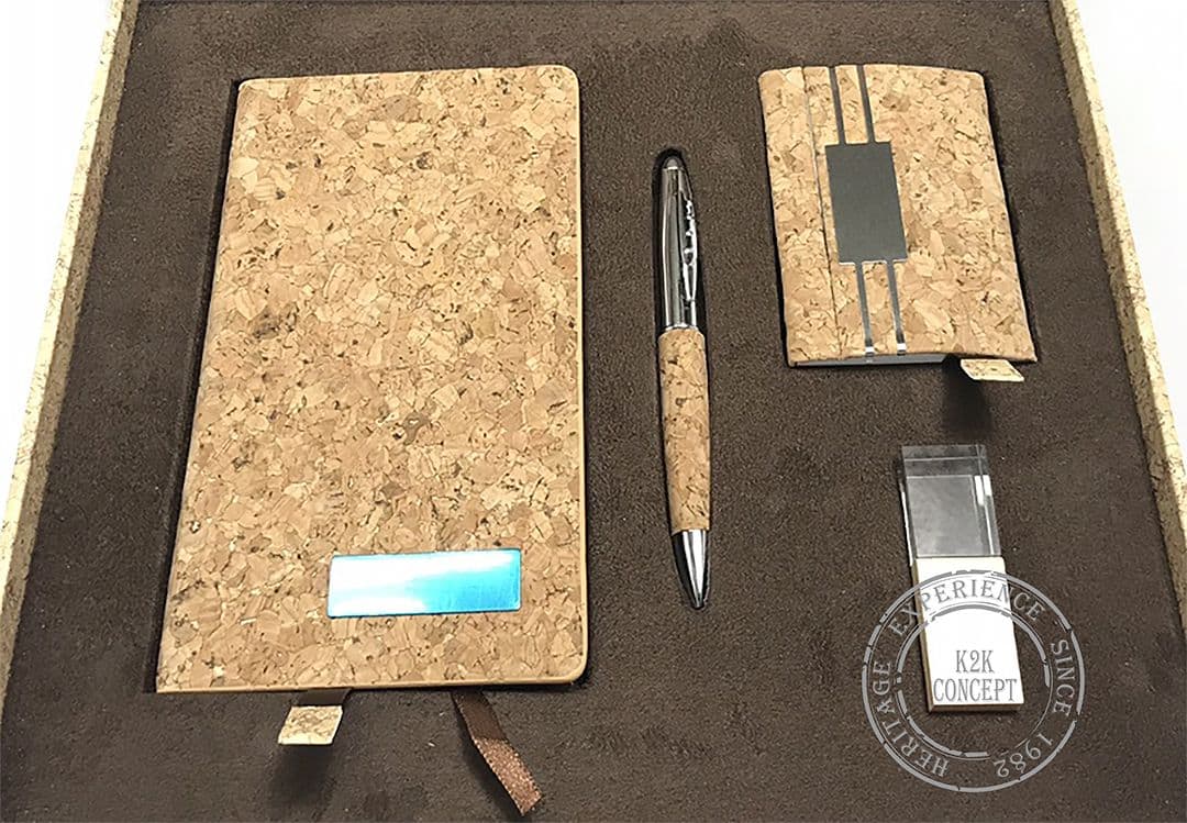 Coffret écologique en simili-cuir en liège avec garniture en faux daim en interne