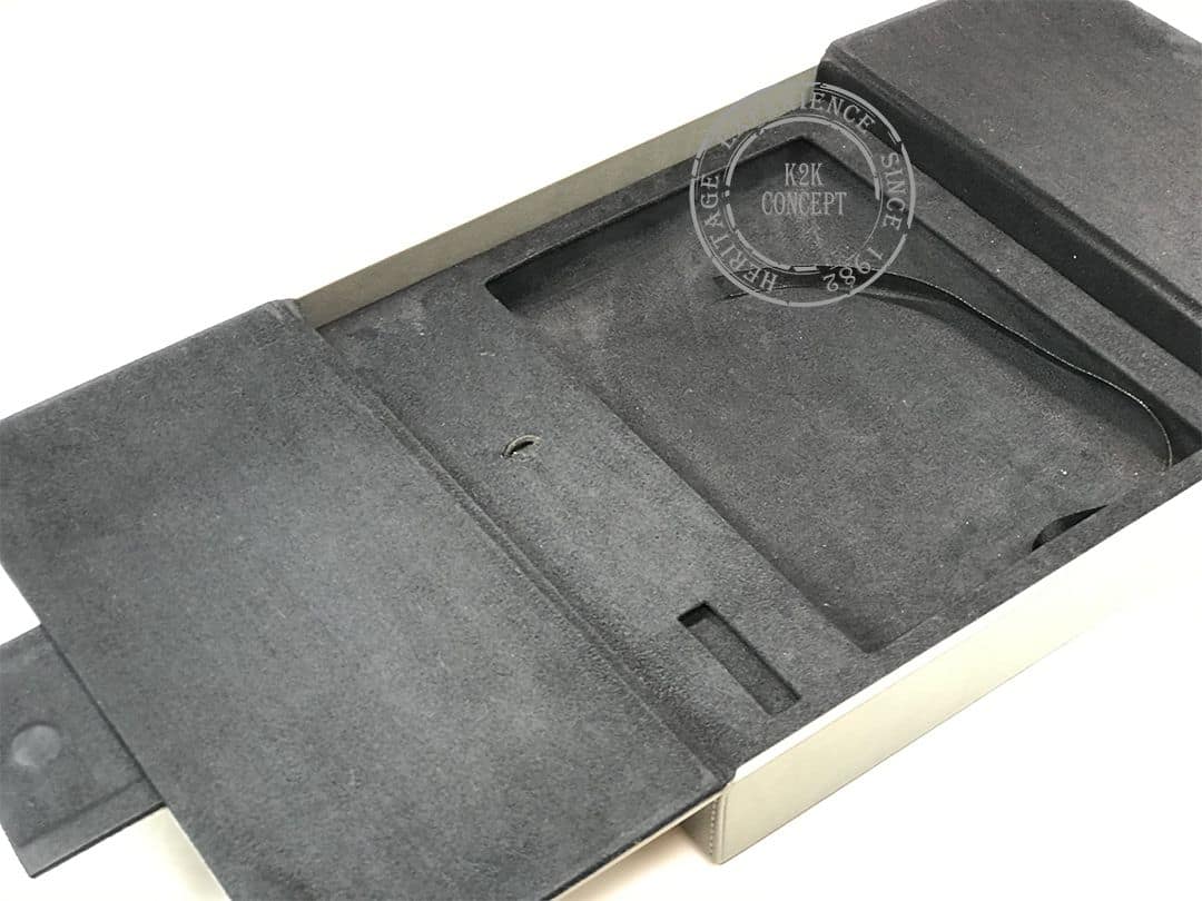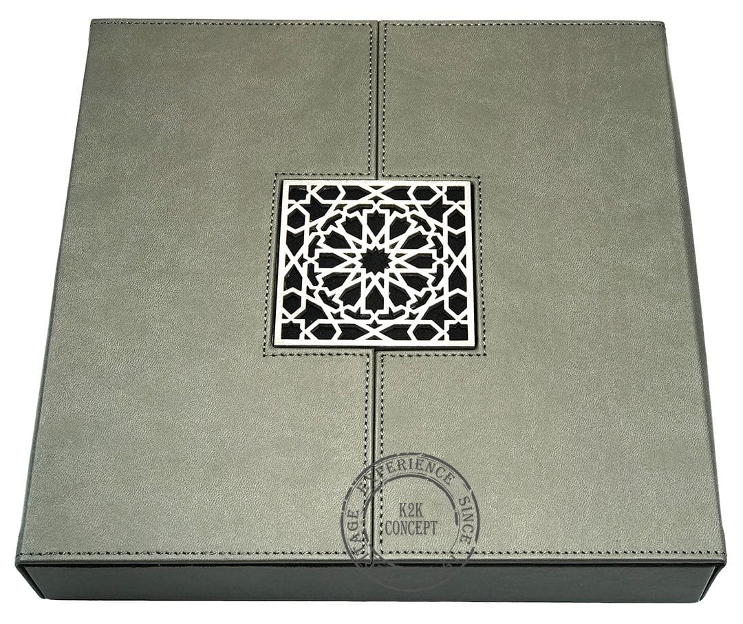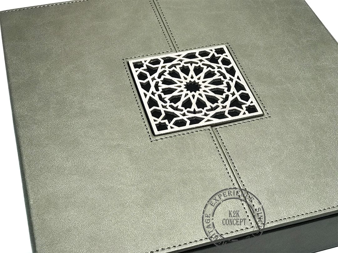 Coffret avec motif moucharabieh avec garniture en simili-cuir en externe et faux daim en interne