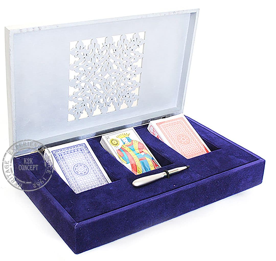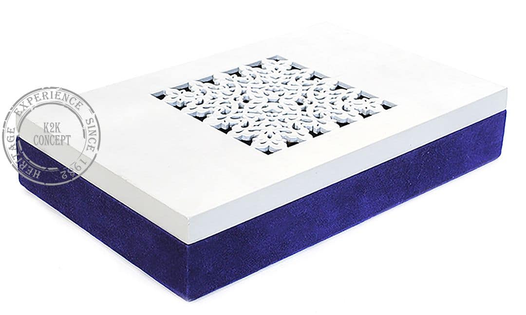 Coffret avec découpe arabesk en bois avec garniture en faux daim en interne