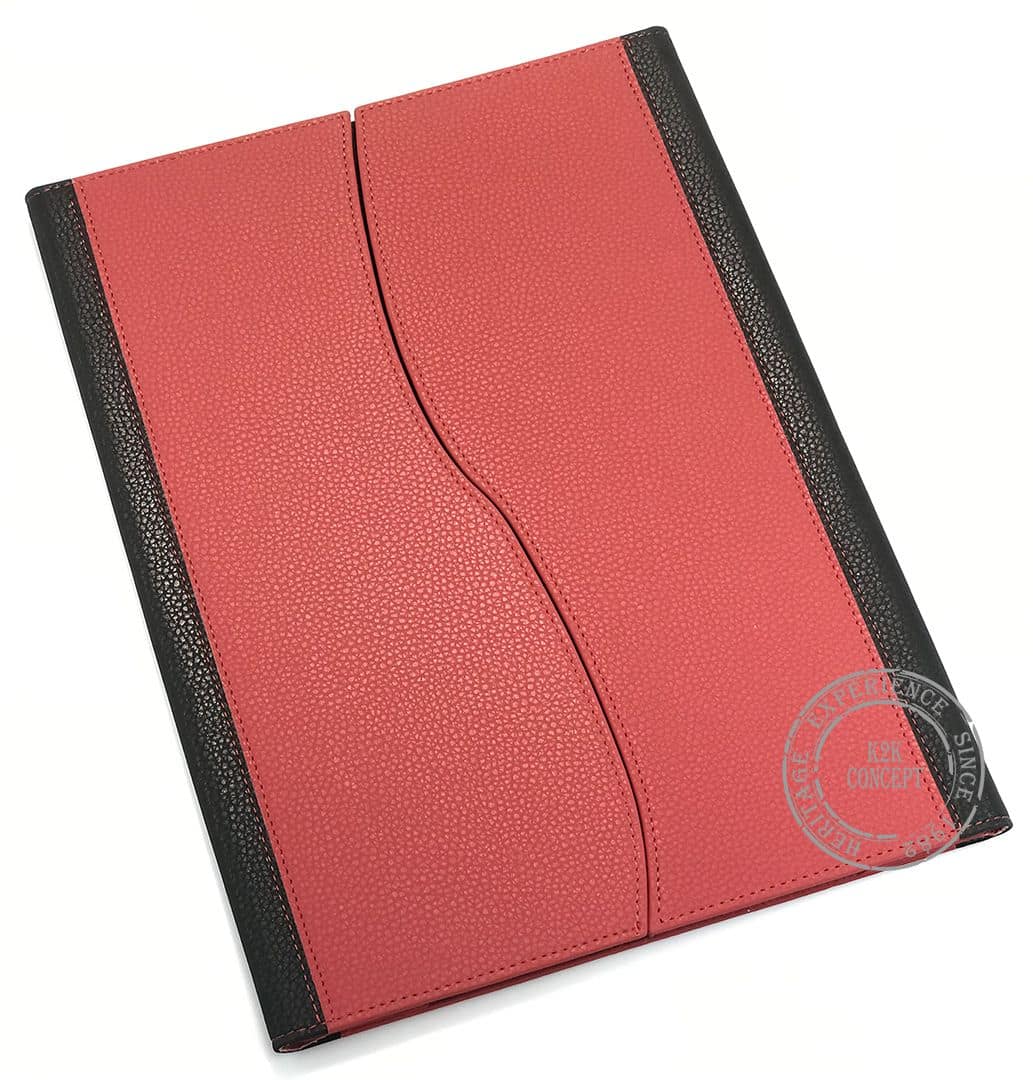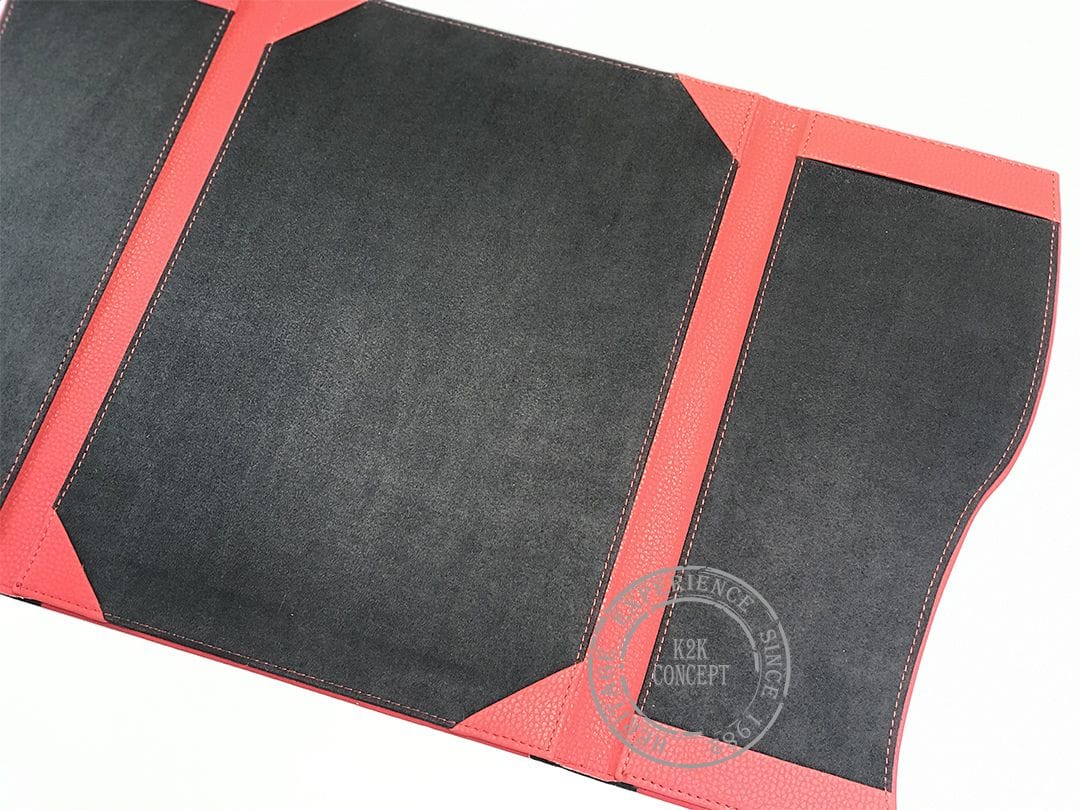 Menu découpe en simili-cuir italien moyennent grainé avec garniture faux daim interne