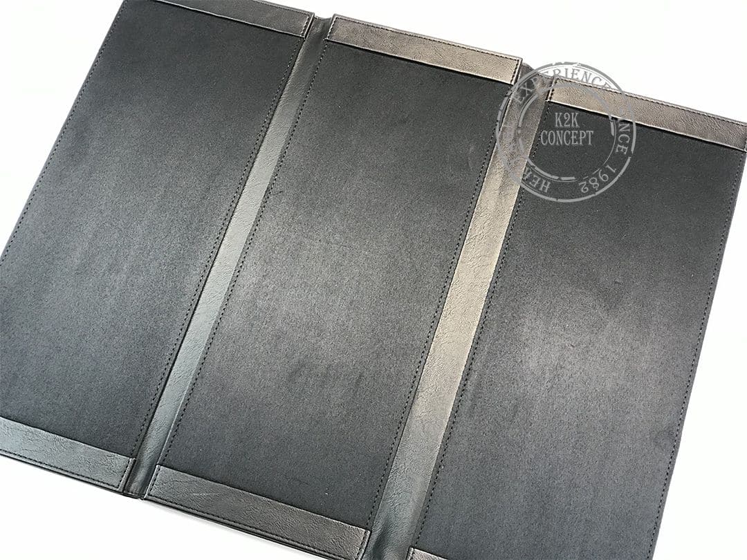 Menu classique à triple ouvertures en simili-cuir rigide moyennent grainé avec garniture faux daim interne