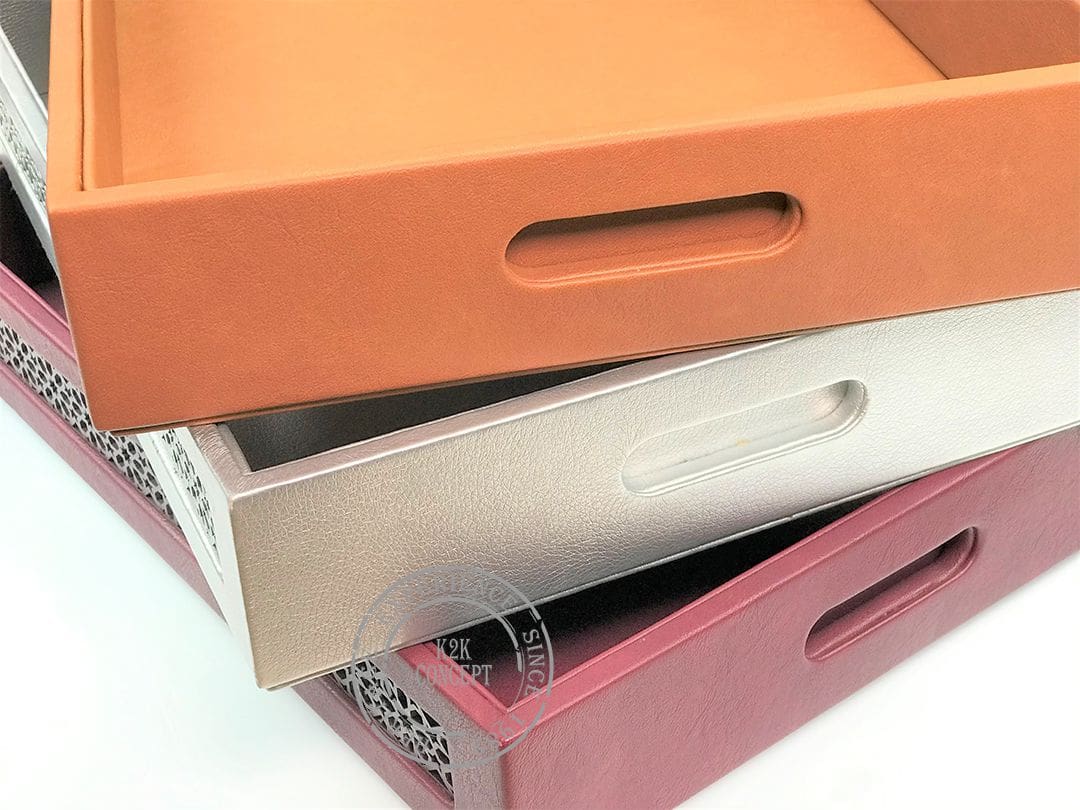 Plateau moucharabieh avec garniture complète en simili-cuir
