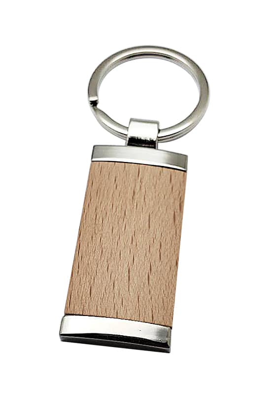 Porte clés rectangulaire fabriqué en véritable bois naturel et métal chromé