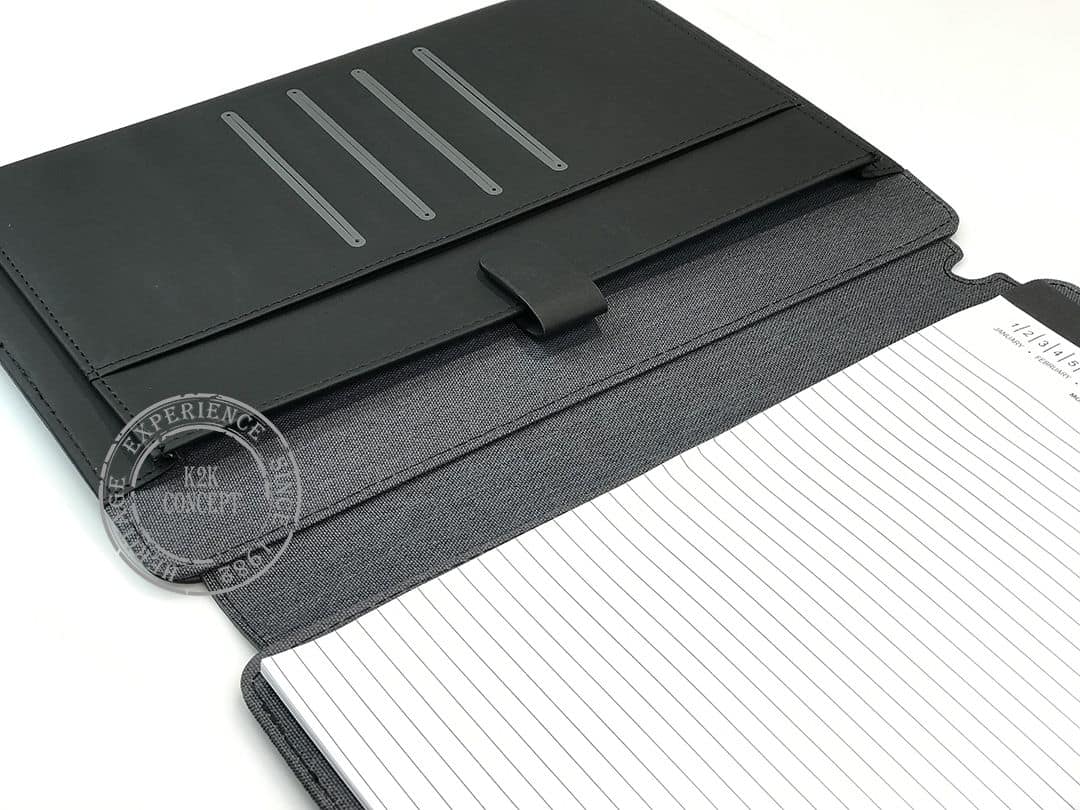 Porte bloc en toile et simili-cuir avec mini languette