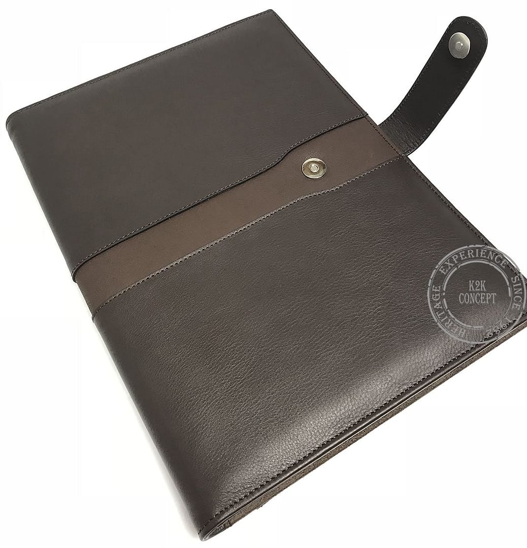 Porte documents en cuir véritable pleine fleur avec fermeture à languette aimantée