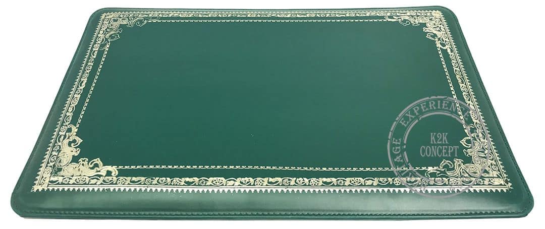 Sous-main artisanal en cuir véritable avec gaufrage à chaud en dorure