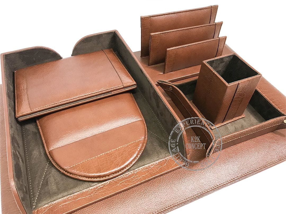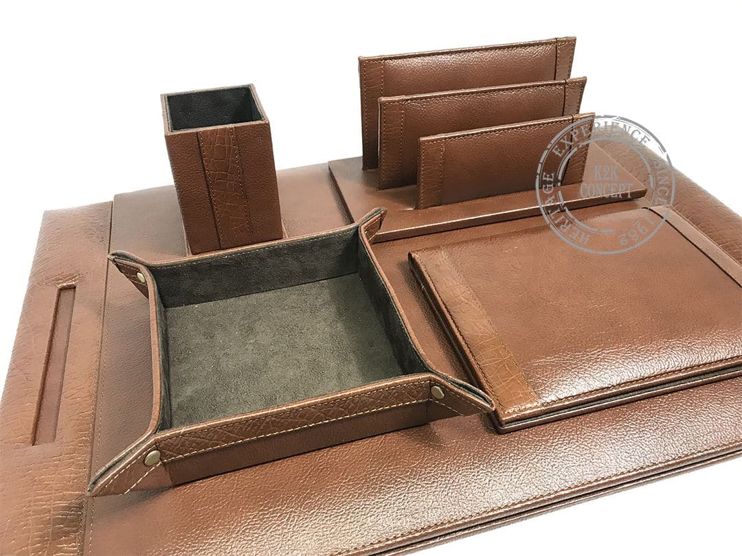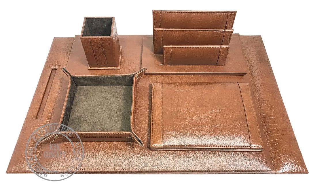 Sous-main en cuir véritable grainé 7 pièces