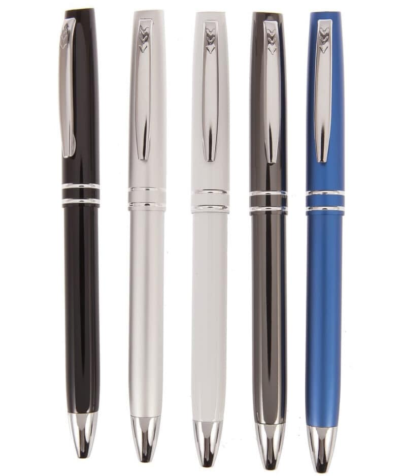 Stylo métal royal à bille, clip et anneaux argent, couleur disponible: noir, argent, gris clair, gris foncé, bleu