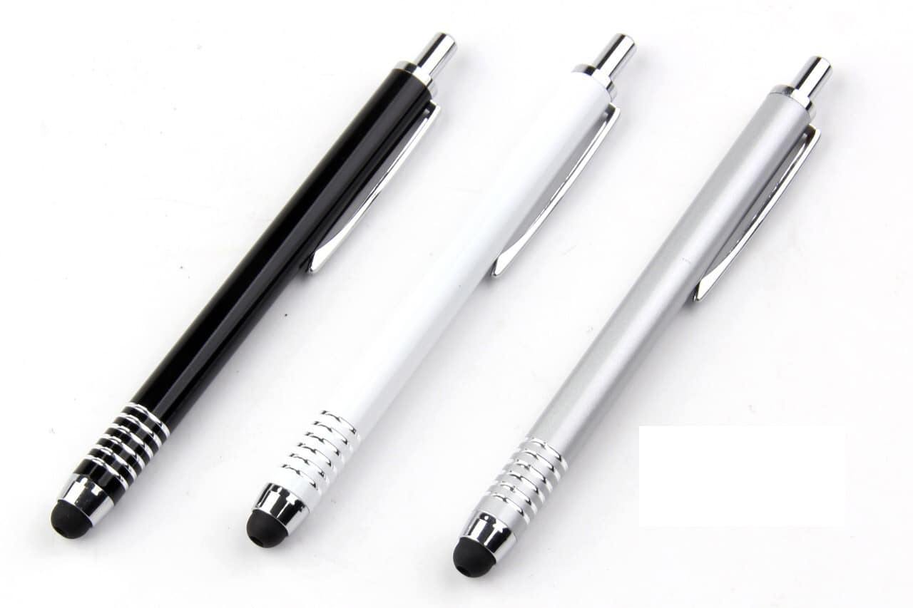 Stylo tactile Mini en métal, clip et anneaux noir, couleur disponible: noir, gris clair, blanc