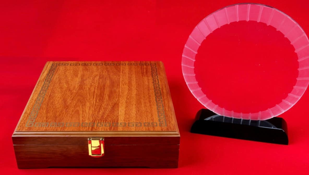 Trophée Cristal Rond avec coffret en bois